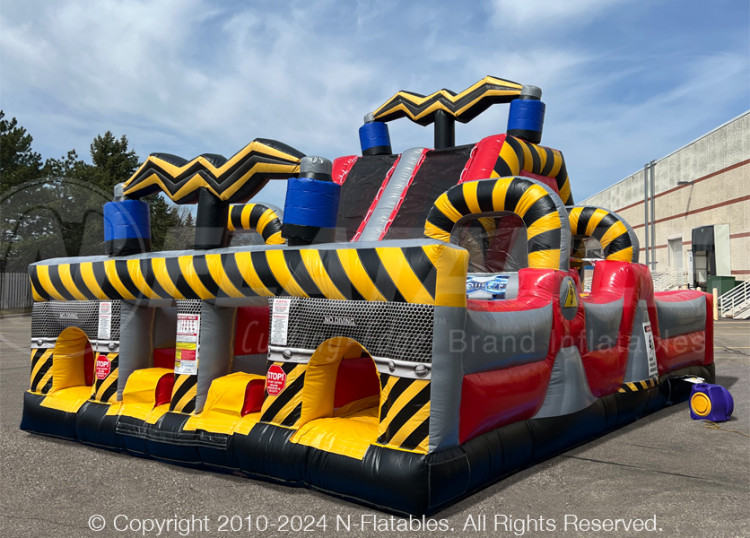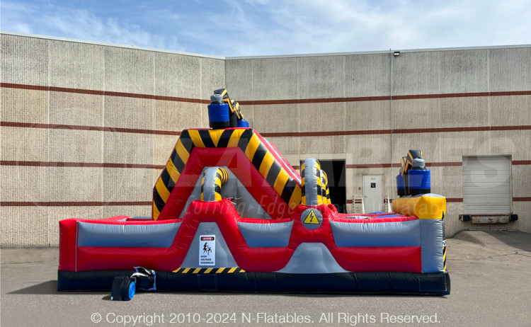 This High Voltage obstacle is a challenge designed with smaller patrons in mind but good for the big kids as well. It features tunnels, tackle dummies, squeeze plays, a climbing wall and slide. As an added bonus, it only requires 1 operator since its 180° design allows patrons to enter and exit on the same side of the unit.